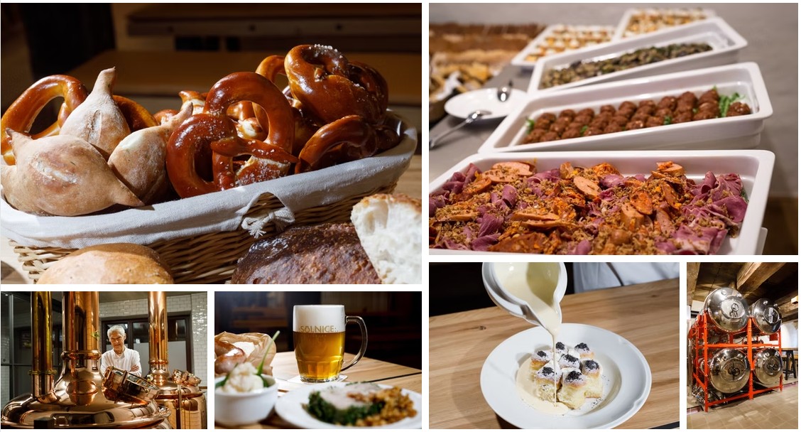 Tým kuchařů pro hosty restaurace Solnice připravuje gastronomické lahůdky založené na rakousko-uherské kuchyni s důrazem na vlastní výrobu, zejména domácího pečiva a uzenin. Na své si však přijdou i hosté, kteří masu neholdují, stejně jako lidé s různými potravinovými intolerancemi.