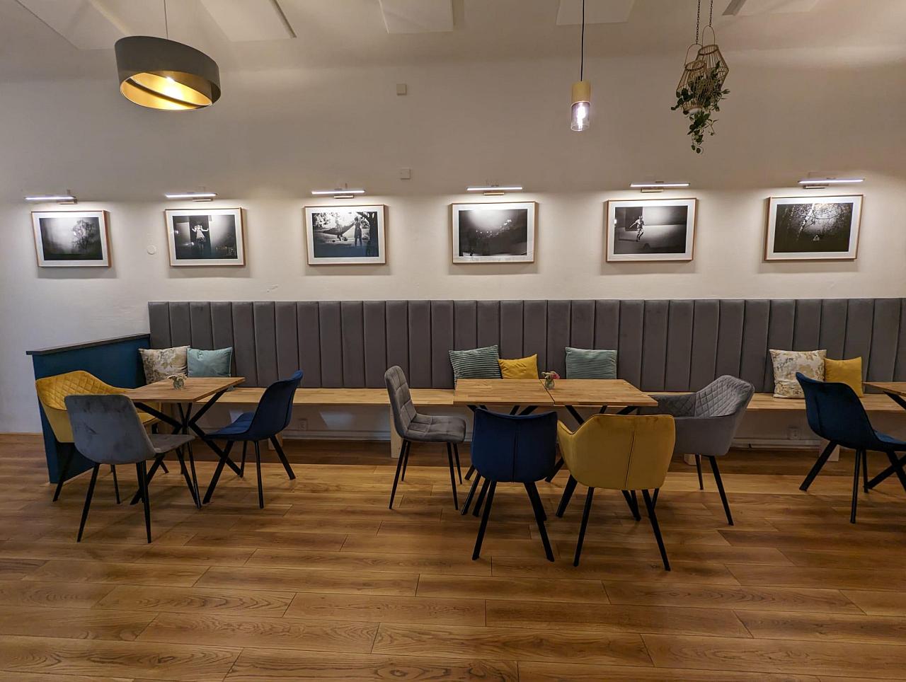 zobrazit na mapě Kavárna uvnitř Biograf Kotva nabízí útulné a klidné prostředí, ideální pro relaxaci před filmem, po filmu nebo kdykoliv během dne.
