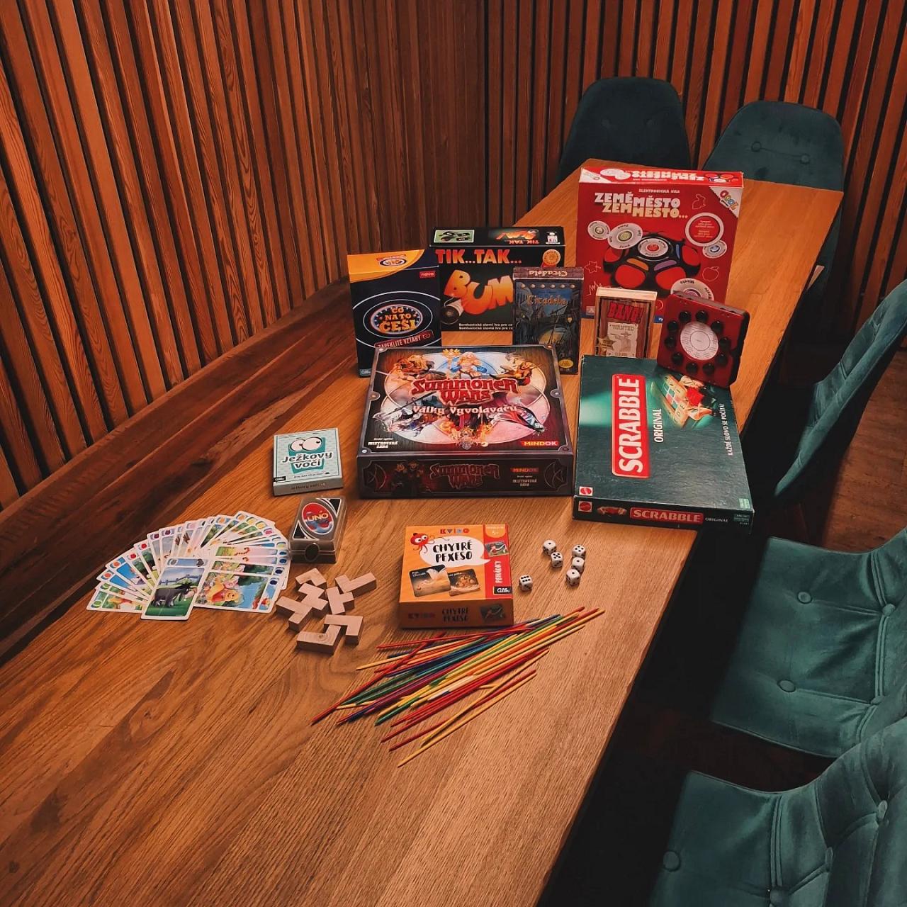 Pro chvíle pohody jsou hostům k dispozici také deskové hry a knížky k zapůjčení, takže si zde mohou příjemně užít čas s přáteli i rodinou.