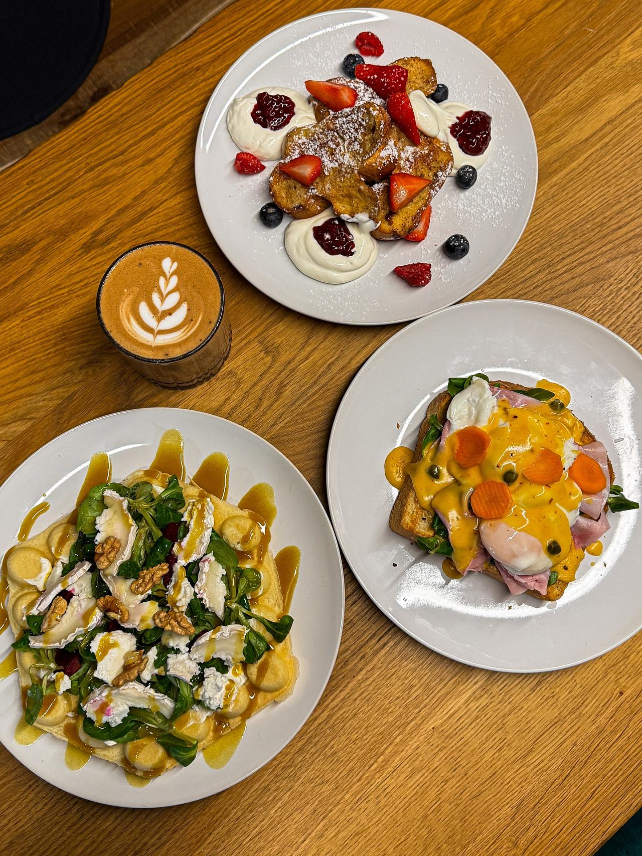 Nabízí výběrovou kávu, sezónní drinky a další nápoje, poctivé domácí zákusky, bublinkové vafle i snídaně po celý den.