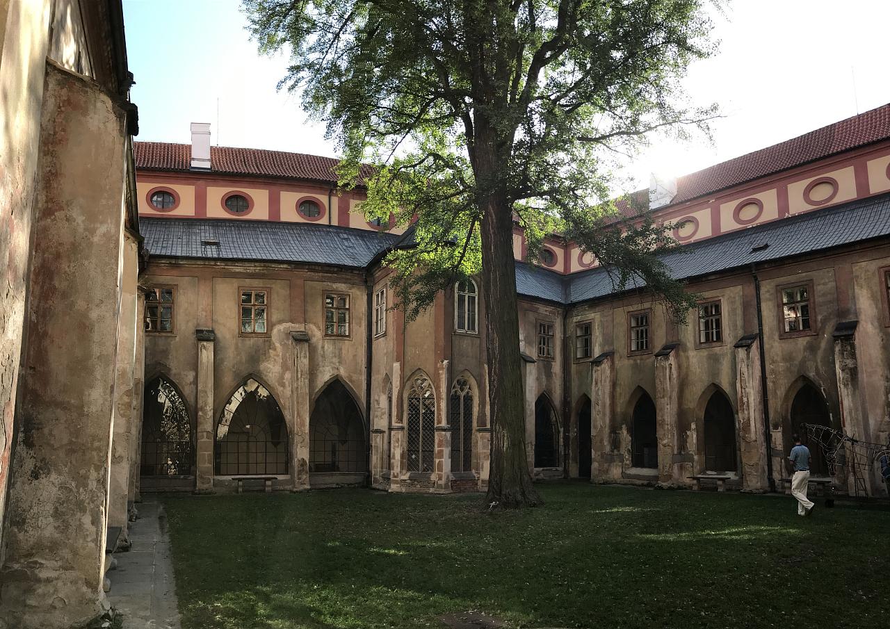 V interiéru kostela se dochovaly zbytky vzácné malířské výzdoby ze 14. a 15. století (např. desetimetrová postava sv. Kryštofa, sv. Dorota, Zvěstování Panny Marie a sv. Jiří). Vzácné nástěnné malby se nacházejí i v křížové chodbě. Na jihu ke kostelu Obětování Panny Marie je připojena klášterní budova s gotickým ambitem. Uvnitř konventu je rajský dvůr, který obklopuje ze všech stran obdivuhodná křížová chodba. S klášterem si můžete prohlédnout i tzv. Bílou věž, která pochází z období pozdní gotiky, má barokní báň a svou výškou 51 metrů je dodnes významnou dominantou panoramatu města. Unikátních je i pět barokních soch v zahradě kláštera, jejichž autorem je Josef Dietrich. Ty původně stály při vstupu do klášterního kostela. Traduje se, že soše svatého Josefa propůjčil sochař svou vlastní tvář.