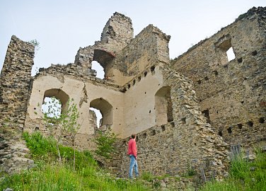 Die Burgruine befindet sich 17 km von Budweis entfernt in südlicher Richtung. Sie finden Sie an der Moldau im Abschnitt zwischen Budweis und Český Krumlov. Der Bau der einstigen Burg wurde zu den Zeiten Karls IV. von der Adelsfamilie der Rosenberger (tsch. Rožmberk) veranlasst und stammt also aus dem 14. Jahrhundert. Somit ist sie im Grunde genommen etwa gleich alt wie die berühmte Burg Karlštejn (dt. Karlstein). Im Gegensatz zu ihr ließ man aber die Burg Maidstein verwahrlosen und so wurde sie allmählich zu einer Ruine. Ein Besuch dieses überaus interessanten Burg-Überbleibsels lohnt sich auf jeden Fall. Je mehr dieser Ort vom Lauf der Zeit gezeichnet und von Menschen übersehen wurde, umso mystischer und romantischer erscheint er uns heute. Zu diesem Eindruck trägt noch die umliegende prächtige Natur des Blansker Waldes (tsch. Blanský les) bei, die ein Naturschutzgebiet ist. Gegenwärtig ist die Ruine in Besitz der Gemeinde Křemže, welche sich bemüht, den imposanten und ausgedehnten Torso der Ruine so gut wie es geht vor weiterem Zerfall zu schützen. Praktischerweise befindet sich vor der Ruine ein Kiosk, wo Sie Getränke, Snacks und Andenken kaufen können. Wer sich gerne mal im Freien eine Wurst oder dergleichen brät, kann dies nach Herzenslust auf der dafür vorgesehenen Feuerstelle tun. Des Weiteren finden hier diverse kulturelle Anlässe und auch Hochzeiten statt. Die Burgruine ist täglich von Sonnenaufgang bis Sonnenuntergang geöffnet.