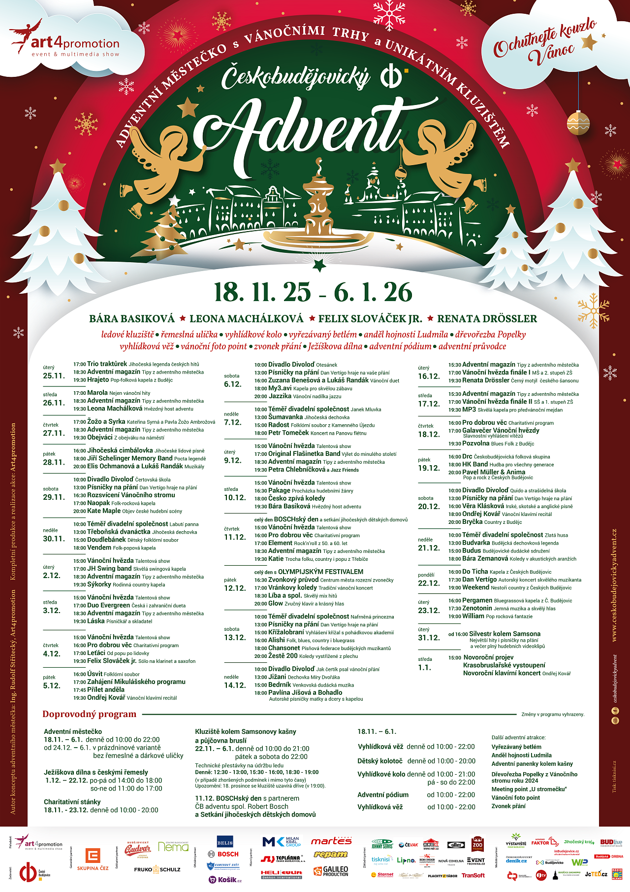 Entspannen Sie sich und geniessen Sie die weihnachtliche Stimmung auf dem Přemysl-Otakar-II-Platz, wir freuen uns auf Ihren Besuch beim Českobudějovicer Advent!