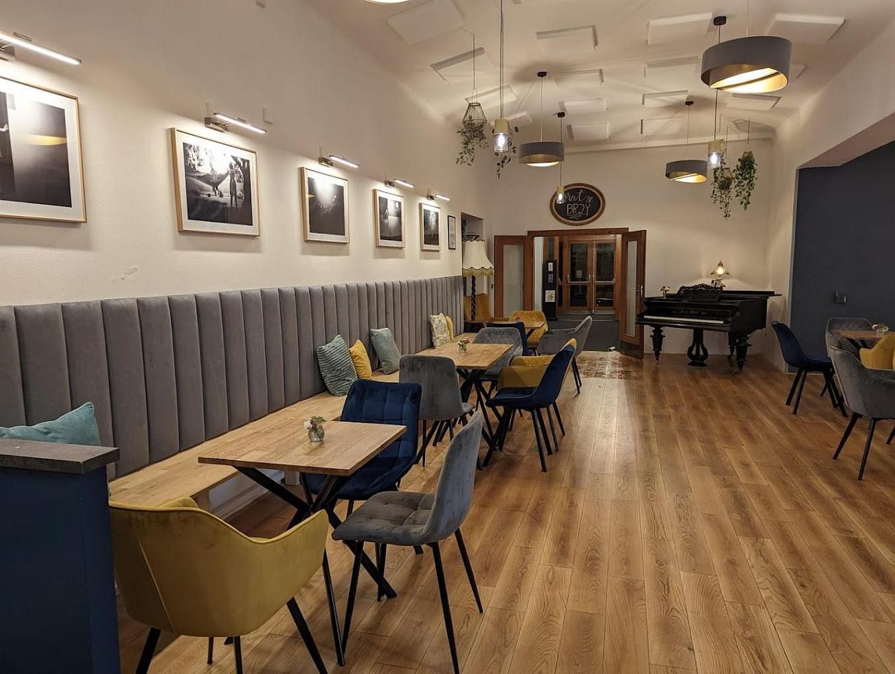 zobrazit na mapě Kavárna uvnitř Biograf Kotva nabízí útulné a klidné prostředí, ideální pro relaxaci před filmem, po filmu nebo kdykoliv během dne.
