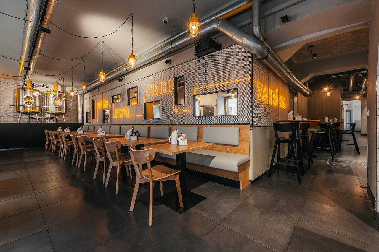 zobrazit na mapě Restaurace Modrý dveře staví svůj koncept na propojení tří základních elementů – masa, piva a grilu.