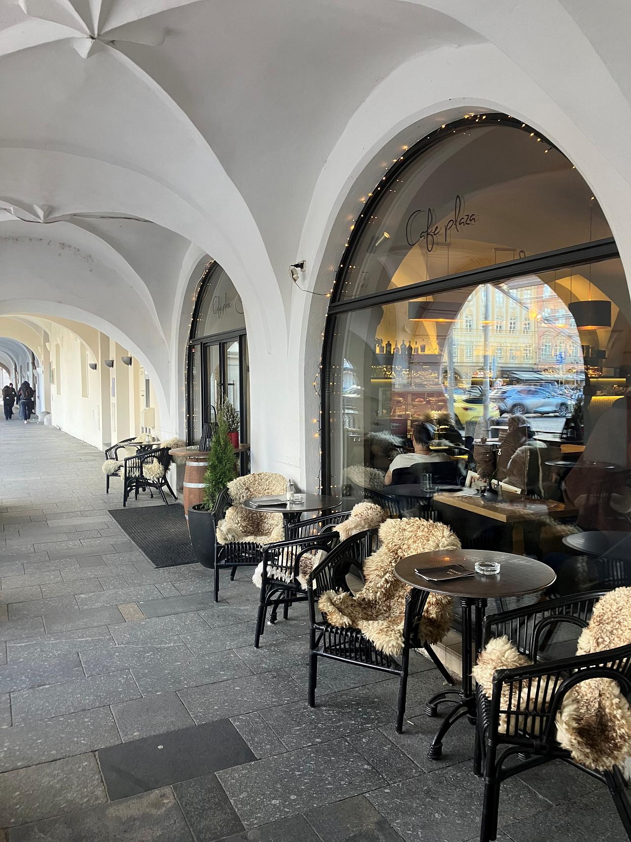 zobrazit na mapě Kavárna je umístěna v historické budově hned vedle českobudějovické radnice s výhledem na náměstí Přemysla Otakara II.