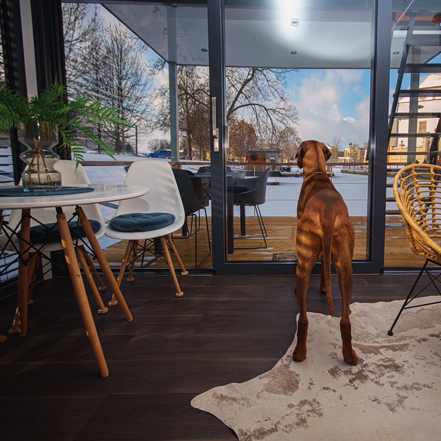 Uvnitř spíš menší prostor, ale venkovní posezení je celoroční a vyhřívané. Pokud máte psa, oceníte hlavně venkovní prostor a klidné prostředí. Háječek je ideální místo na dlouhé kafe i v zimě.